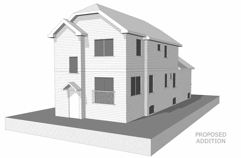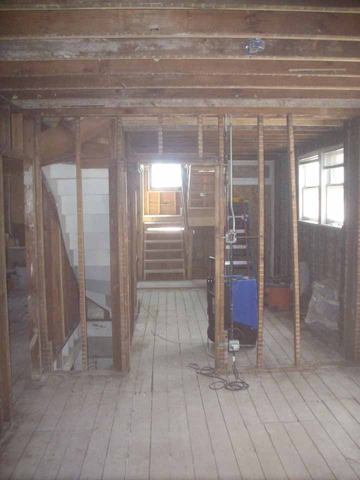 A Master Bedroom suite was built on the new second floor, along with two bedrooms and a hall bathroom. A new furnace was installed for the second floor and the front area remained as storage.