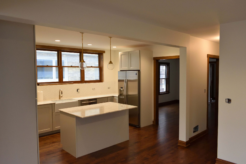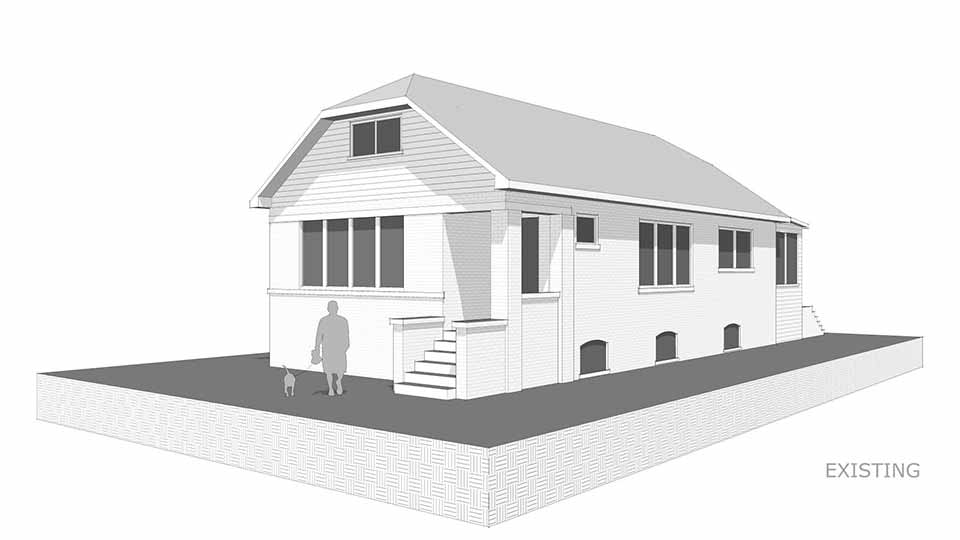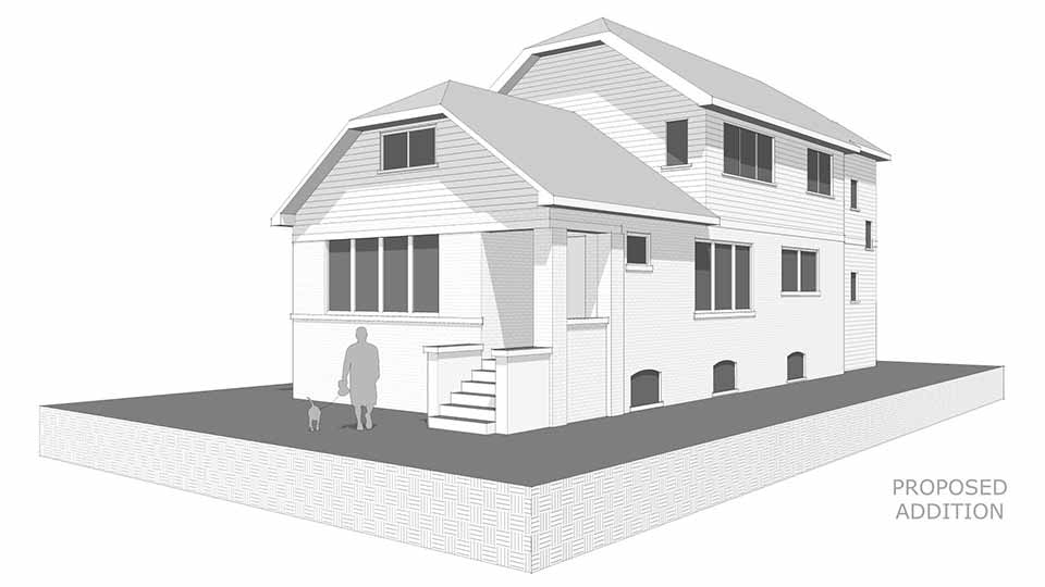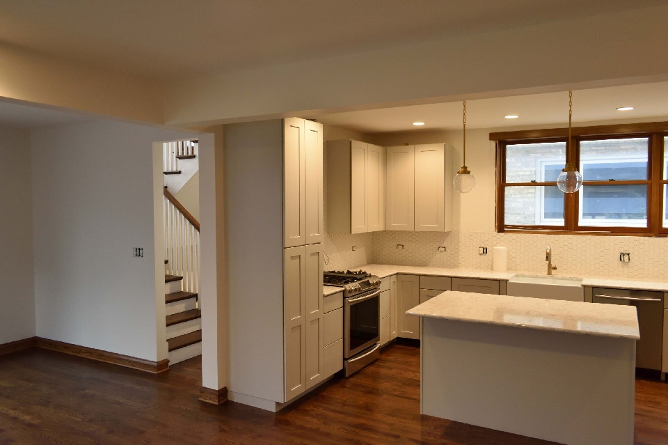 A young growing family needed to add bedrooms to the second floor of their bungalow, and replace an outdated rear porch structure. The front living areas had been remodeled by a previous Owner, but the kitchen was outdated cramped.
