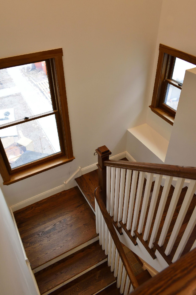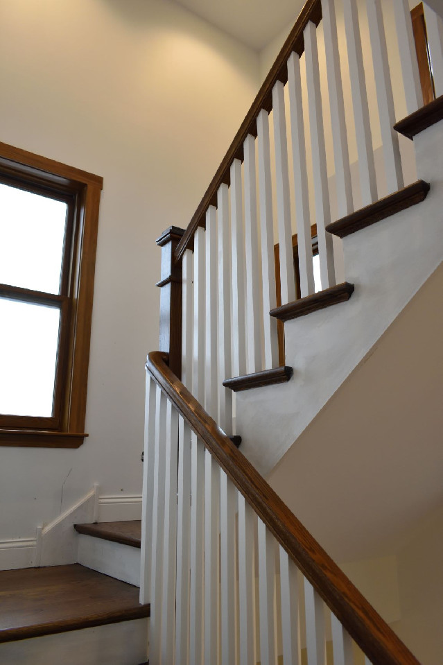 The existing stairs were very steep and narrow, and took space away from an already cramped kitchen. The rear bedroom led to an unheated porch area that was not being utilized.