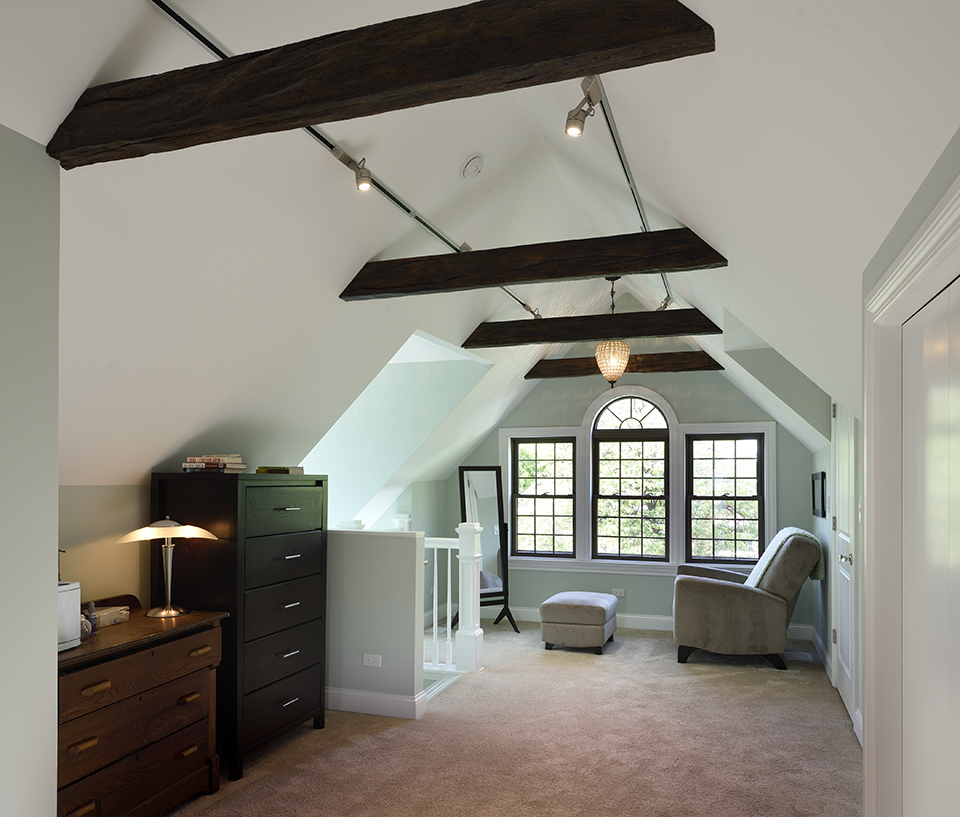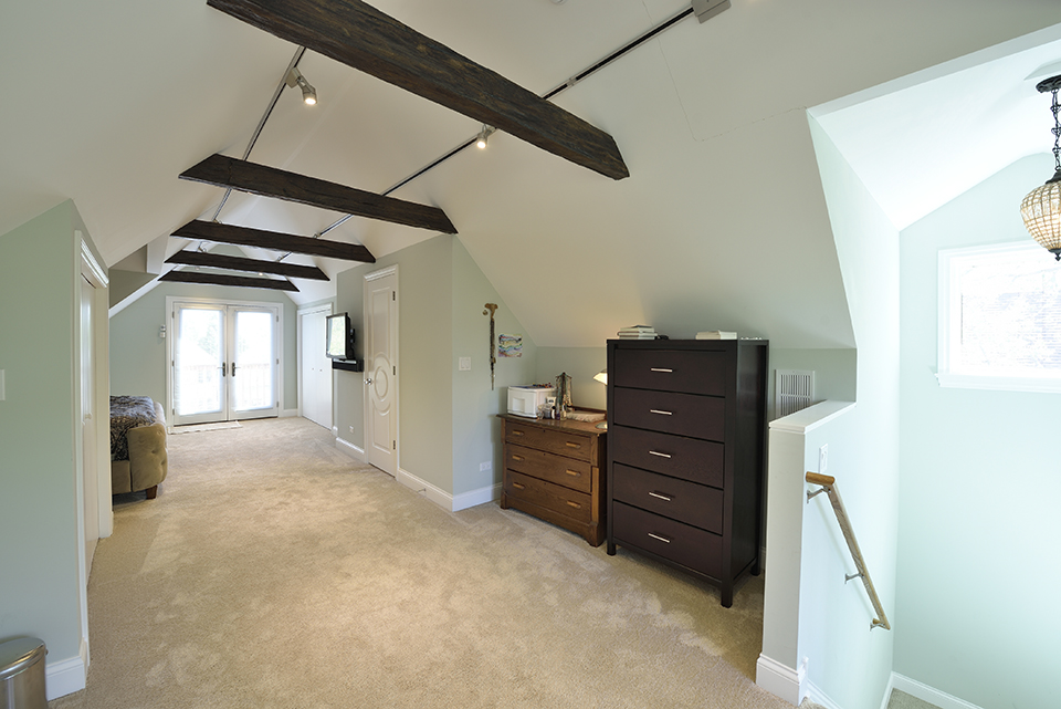 There were three bedrooms on the second floor and no convenient way to access the rear deck, which was raised up. The parents wanted a separate master suite on the attic floor, which was raw, unused space. Since they did entertain frequently, they needed to replace the old rear deck.