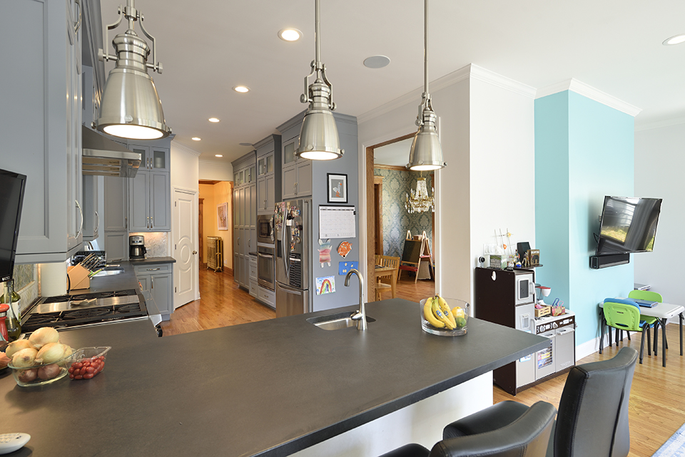 Design Challenge:A young, growing family needed more bedrooms and entertainment space, and wanted to stay in their neighborhood. The house had enough space, but was poorly organized. The existing, rear addition on the first floor had structural problems, and was built on an old porch foundation. The living and dining room were fine, but the small kitchen had an awkward layout, and was separated from the rear family room.