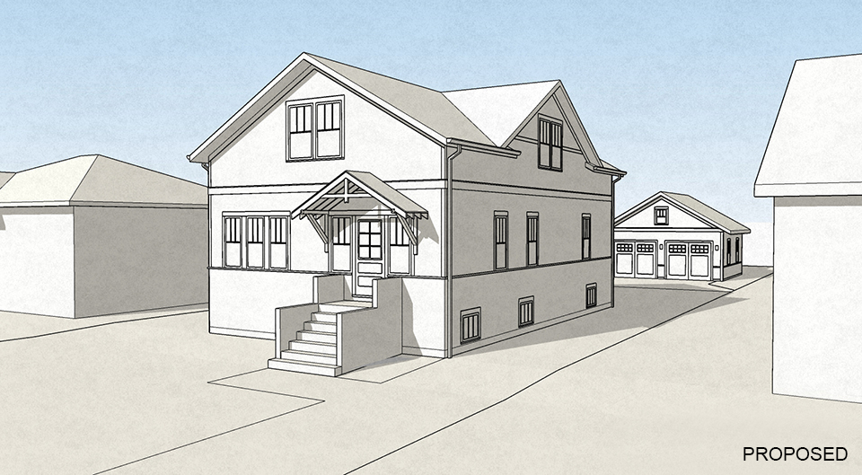 The project plans propose to raise the roof structure an additional 4 feet, which will make a big impact on how the attic space functions and feels. The updated attic space will accommodate a new master bedroom, sitting room, open office, master bathroom and increased storage space. The new bathroom will incorporate a spacious connected shower & tub area. The project's exterior design details will tie the new attic construction into the existing house by maintaining a similar roofline, trim and windows.