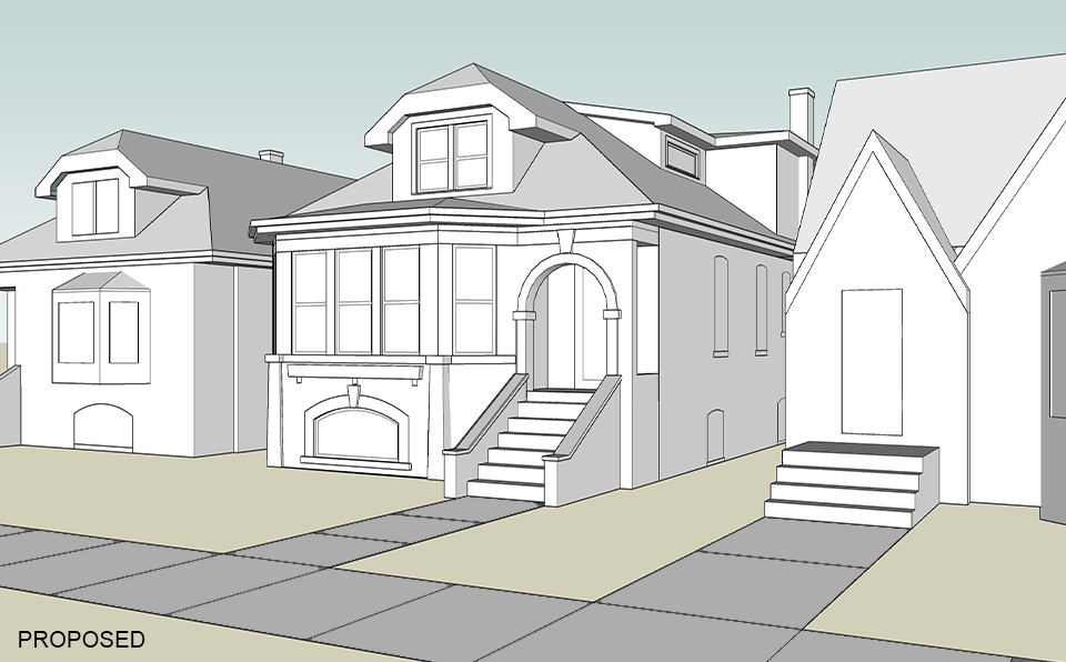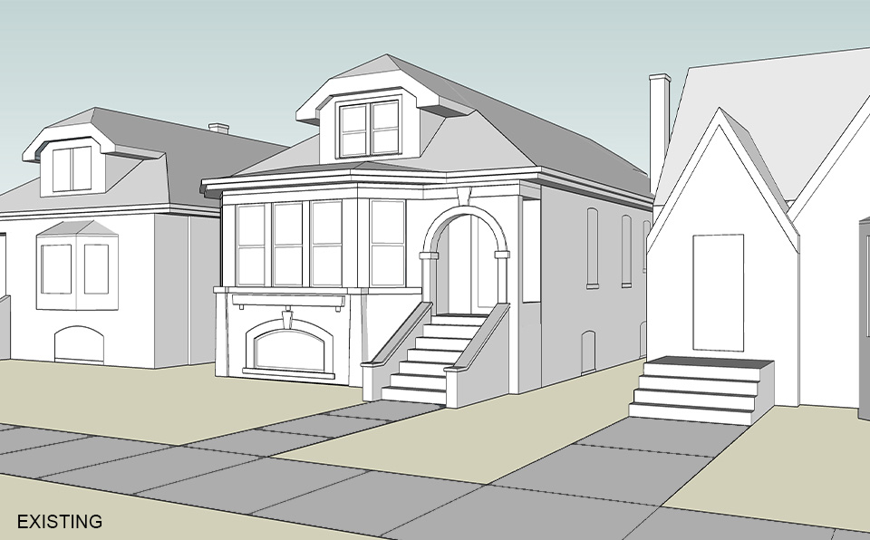 The owners of this bungalow loved its historic charm and architectural detailing. Like many other bungalows, however, it did not have enough space to meet their needs. The owners wanted to expand the unfinished attic and raise the existing ceiling heights with a new addition.