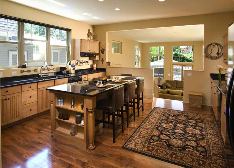 The goal was to add two bedrooms and a bath to the second floor and create a larger kitchen and great room leading to the garden.
