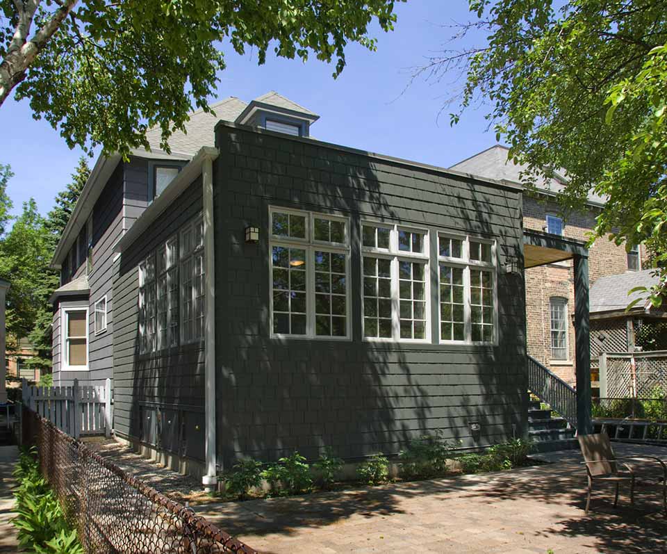 The Owners were very happy in their-semi-Victorian home on the north side of Chicago, but wanted more of a connection to their backyard. The property has an extra long lot with plenty of room for gardens and patio. They wanted a year-round sunroom to stay connected to the outdoor areas.