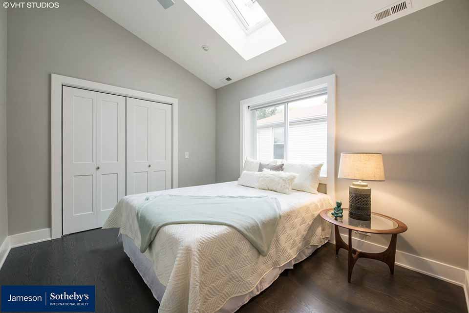 The two bedrooms at the back had sloping ceiling which limited space in the rooms. One bathroom was shared by all three bedrooms, and closets were small and cramped.