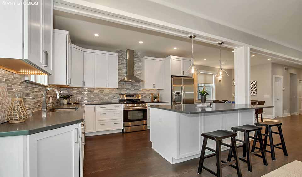 A developer purchased a 3 bedroom, 1.5 bath single family residence with spzce challenges and finishes that needed updating. The existing kitchen was small and was separated from the backyard by a small enclosed porch. The existing stairs to the second floor were very narrow and winding.
