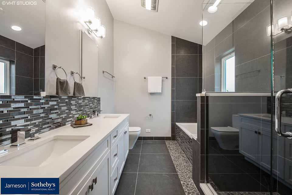 A guest room and bathroom was added in the basement along with a family room, storage, laundry, mechanical rooms.