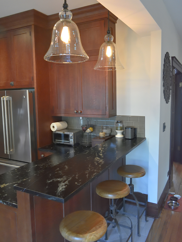 The client had recently purchased the craftsman style bungalow. They wanted to renovate the kitchen and second floor bathroom, along with other improvements throughout the house. There was an existing furnace that was outdated and not enough electrical outlets throughout the house.